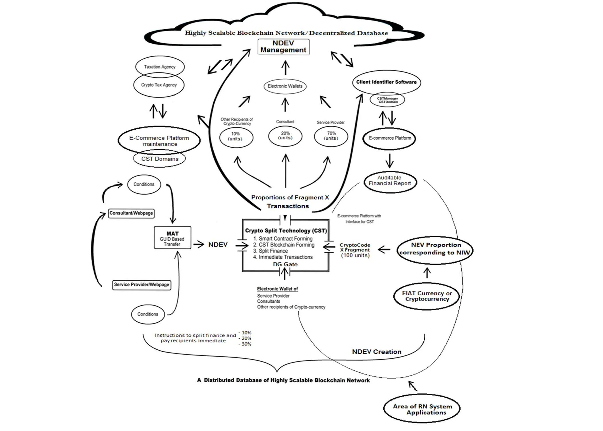 The transition to a non-conflict economy was associated with the use of technology for tokenising values and planetary resources, and the involvement of AI to control transactions of divisible digital codes with a component guaranteeing the exchange properties of the code, and a component for the geolocation of real values or resources from the territory where the NDEV Code was introduced into the network.