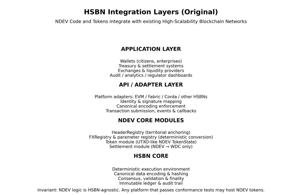 The tokenised NIW (origin-of-value layer) is recorded in the first active decentralised database of the High Scalable Blockchain Network (HSBN), referred to as the Crypto layer.
